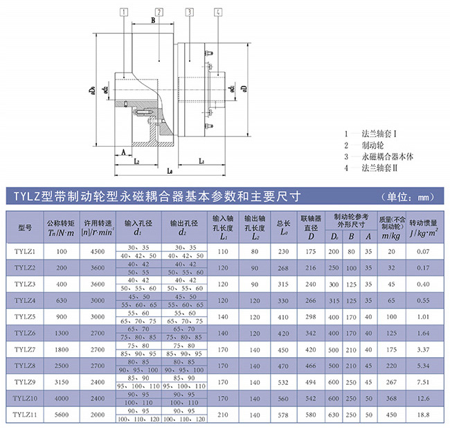 九、TYLZ型永磁耦合聯軸器結構圖及主要參數